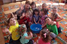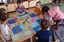 Нәниләр төркеме су белән тәҗрибә үткәрә.