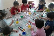 Уртанчылар төркеме Рәсем шөгылендә. Пумала һәм буяулар белән кеше сүрәтләргә өйрәнәбез