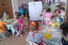 Рәсем шөгыле-пумала белән , кояш ясыйбыз- түгәрәк, аның янына туры сызыклар нурлар сызырга өйрәнәбез.Рәсем шөгыленә кызыксыну ныгыту, матурлыкны аңга алуларына ирешү, төсләрне белүләрен ныгыту.