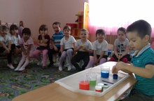 Уртанчылар төркеме балалары су белән тәжрибә уткәрәләр! Балаларнын кузәтучәнлек, фикерләу сәләтен hәм сөйләм телен устеруне дәвам иту.