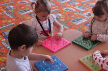 Воскобович тактасы ярдәмендә балалар геометрик фигуралар ясарга өйрәнәләр.