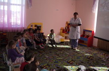Сәламәт яшәү рәвешен пропагадалау максатыннан кечкенәләр төркеме балалары бакча шәфкать туташы белән очрашты. Ул сәламәт яшәү рәвеше нигезендә дөрес туклану мөһим икәнен тасвирлап аңлатты. Балалар аның чыгышын бик яратып кызыксынып тыңладылар.