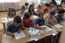 В рамках недели русского языка в старшей группе было проведено занятие по рисованию "Декоративное рисование по мотивам Гжельской росписи". Ребята познакомились с помыслами русского народа, изучили происхождение гжельской росписи и с удовольствием расписали кувшинки под гжель. 12.03.2015