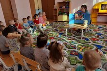 Икенче кече яшьтәгеләр төркеме балалары хайваннар турындагы әкиятләрне аеруча яратып карыйлар. "Әкияттә кунакта" проекты кысаларында рус халык әкияте "Йомры икмәк"не карап үттеләр.