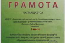 Республика күләм сәхнә иҗаты буенча экологик конкурсында мәктәпкәчә белем бирү оешмалары арасында "Иң яхшы актерлык эш" номинацияда җиңүчеләр