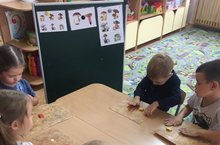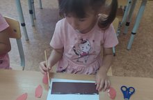 Дети младшей группы делали морковные грядки.