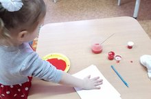 Нәниләр төркеме балалары белән рәсем шөгылендә учлар белән рәсем ясарга өйрәнү.