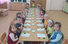 Кечкенәләр төркеме светофор сигналларын, кисеп ябыштыру шөгылендә өйрәнүне дәвам итте.