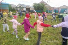 Подготовительная группа на свежем воздухе/Мәктәпкә әзерлек төркеме саф һавада хәрәкәтле уеннар уйный.