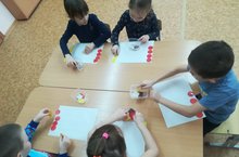 Дети старшей группы закрепляют навыки ориентирования на бумажной плоскости.