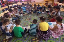 С детьми старшей и подготовительной группы 26 апреля в честь дня рождения великого татарского поэта Г.Тукая провели конкурс стихов. В конце вместе спели песню "Туган тел"