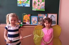 Дети старшей группы наблюдают за бабочкой/Зурлар төркеме балалары саф һавада күбәләкне күзәтәләр.