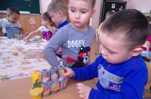 Кечкенәләр төркеме балалары кисеп ябыштыру шөгылендә әтиләренә бүләк ясадылар.