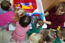 Вторая группа раннего возраста играют в игру "на поезде"