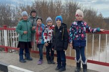Ученики школы были на экскурсии и издалека смотрели на половодье.