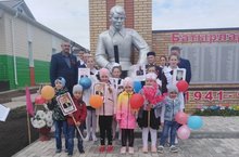 У памятника прошел митинг, посвященный к 9 Маю, где выступили ученики 4 класса.