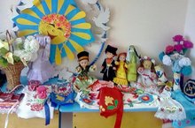 Выставка "Национальный уголок" в младшей и старшей группах "Бурнакской начальной школы-детского сада". 09.03.2021