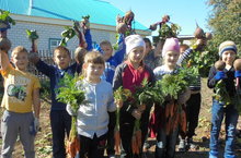 Мәктәп бакчасыннан көзге уңыш җыеп алынды. Күмәк тырышлык нәтиҗәсе булган мул уңыш укытучыларны да,балаларны да нык сөендерде.