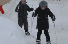 Балалар бакчасында кыш буе, зурлар төркеме балалары чаңгыда йөрде.