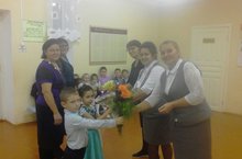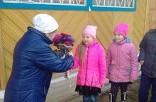 Бакча балалары мәктәпкә кереп укытучыларны бәйрәмнәре белән котлады.
