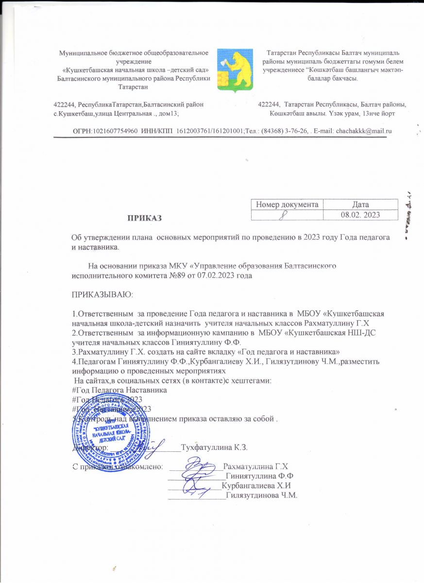 Муниципальное бюджетное общеобразовательное учреждение «Кушкетбашская начальная школа-детский сад» Балтасинского муниципального района РТ/ Татарстан Республикасы Балтач муниципаль районы муниципаль бюджеттагы гомуми белем учреждениесе "Көшкәтбаш башлангыч мәктәп-балалар бакчасы."