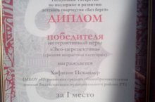 Поздравляем победителя интерактивной игры "Эко-перспектива" на фестивале муниципальных образований РТ по поддержке и развитию детского творчества «Без бергэ» Хафизова Искандера ученика МБОУ "Нурминская СОШ"!!! 02.06.2016