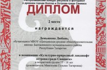Поздравляем Демьянову Любовь ученицу МБОУ "Ципьинская СОШ", занявшую 2 место в Республиканском конкурсе рисунков и фоторабот о древнем городе Болгар и острове-граде Свияжск! 02.06.2016