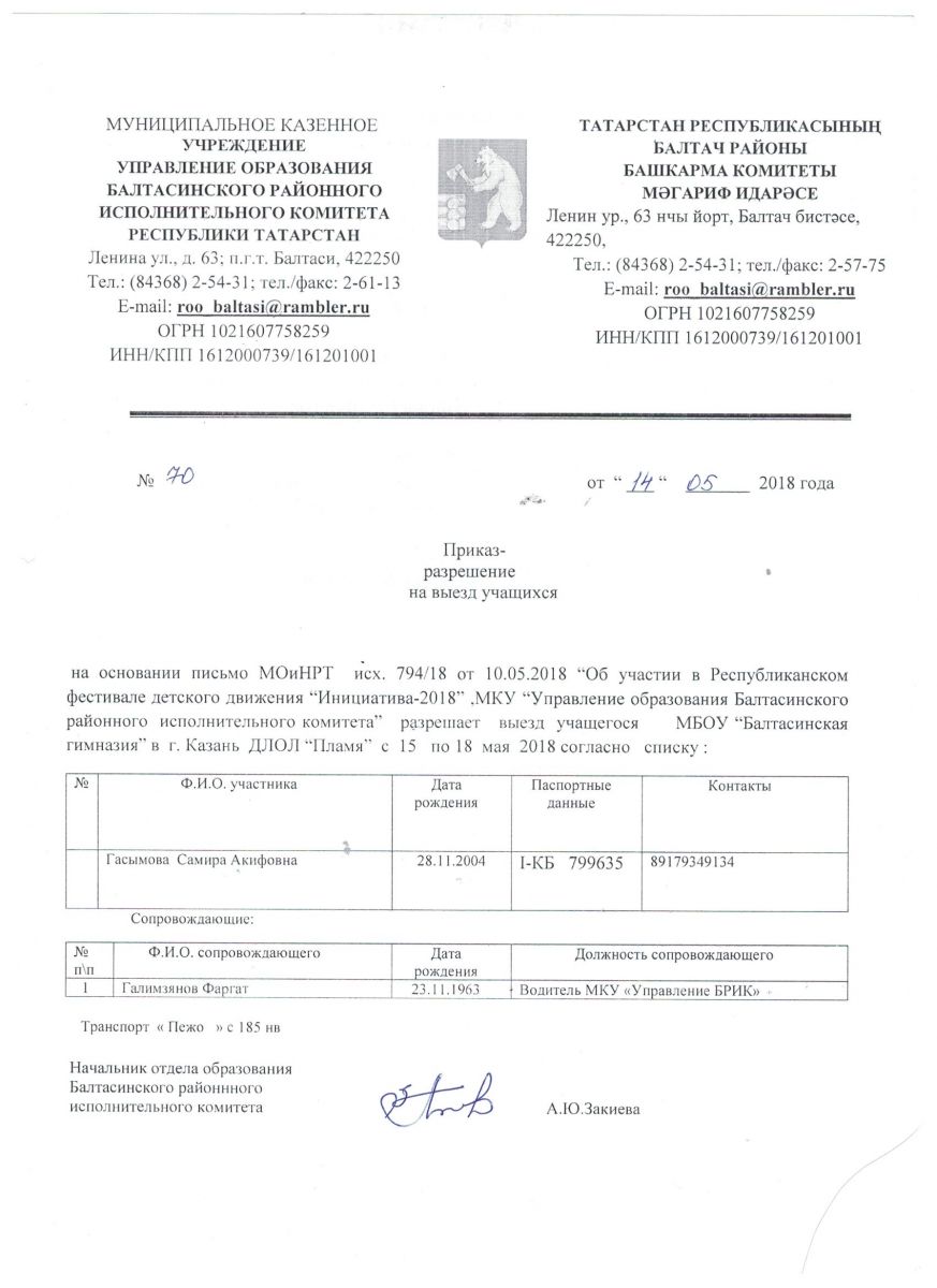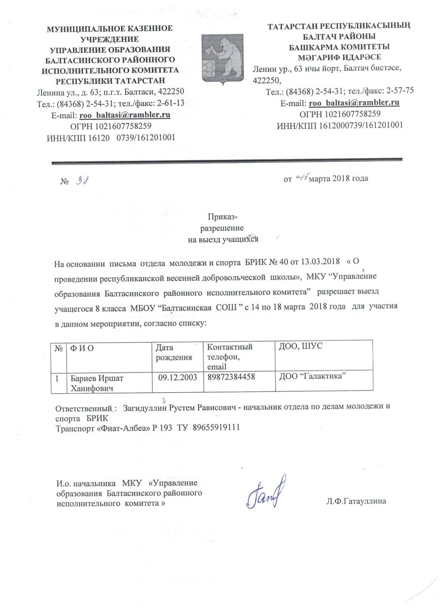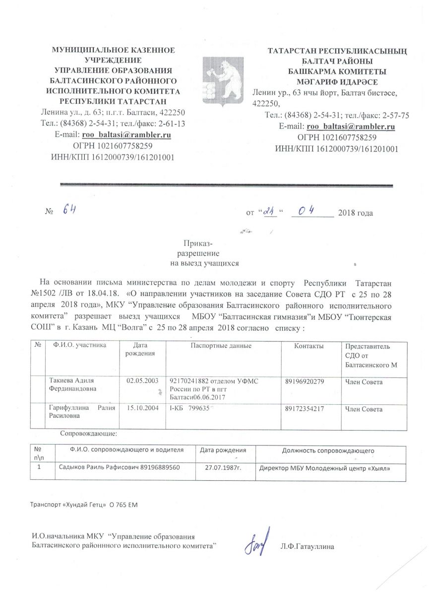 | Адрес: | 422250, РТ, Балтасинский район, п.г.т. Балтаси, ул. Ленина, д.63 |