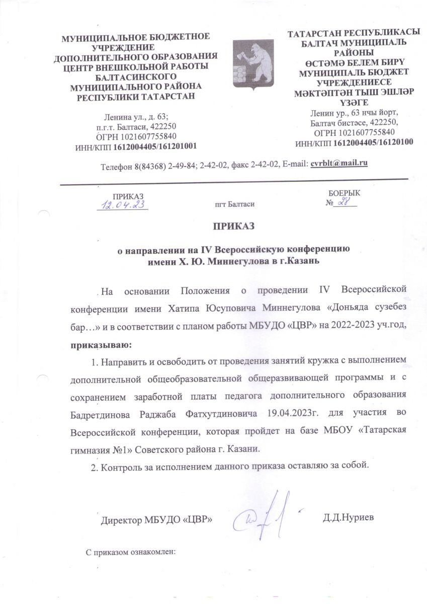 Адрес: 422250, РТ, Балтасинский район, п.г.т. Балтаси, ул. Ленина, д.63