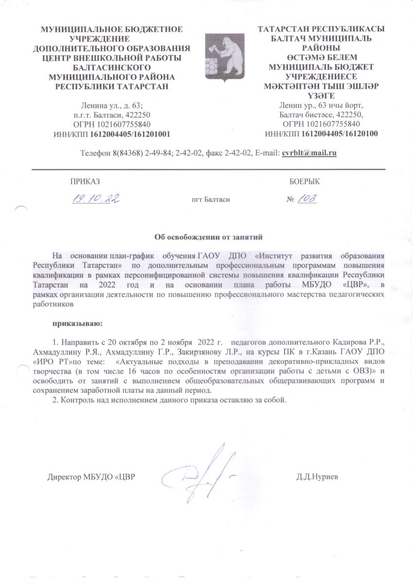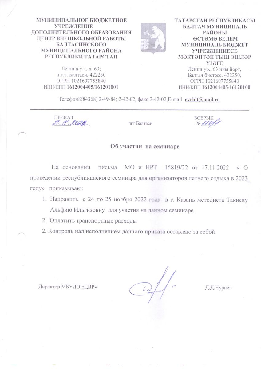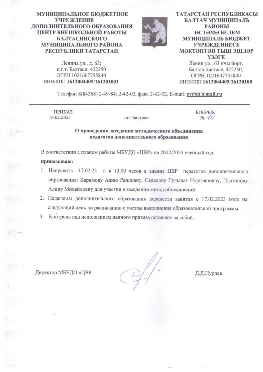 Короткое название: МБУДО "ЦВР" Балтасинского муниципального района Республики Татарстан