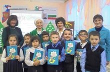 Рәсемдә: очрашу кунаклары укытучылар һәм балалар белән. -