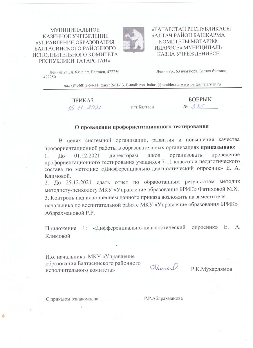 | Короткое название: | МКУ «Управление образования Балтасинского районного исполнительного комитета» |