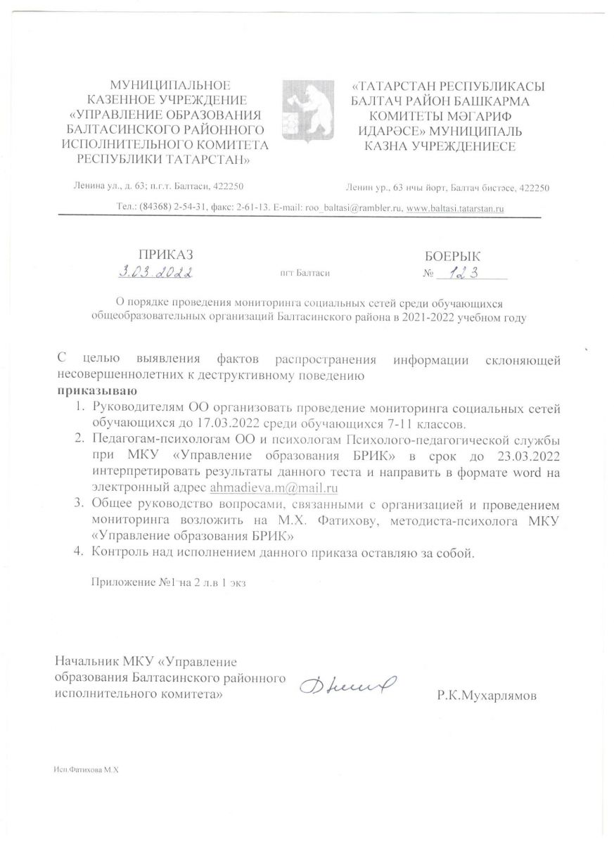 | Короткое название: | МКУ «Управление образования Балтасинского районного исполнительного комитета» |