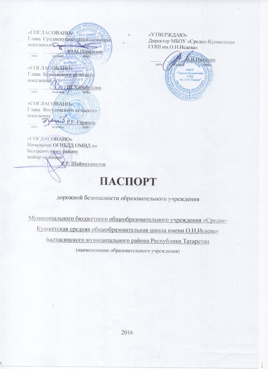 Паспорт дорожной безопасности МБОУ "Средне-Кушкетская СОШ им. О.Н.Исаева"