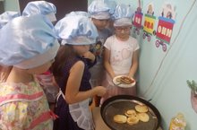 Мәктәпкә әзерлек төркемендә тәрияләнүче балалар узләре пешергән коймакттан авыз иттеләр..