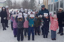 "Балаларның куркынычсызлыгы -олыларның кайгыртуында" исемле буклетлар ясап , зурлар төркемендә йөрүче балалар ОГИБДД хезмәткәрләре белән бергә юлда йөрүче шофёрларга өләштеләр. Кечкенәләр төркемендә тәрбияләнүчеләр әти-әниләренә үз куллары белән ясаган буклетларны әти-әниләренен кулларына тапшырдылар. Баларның теләкләренә шофёрлар да битараф калмас дип өметләнәбез.