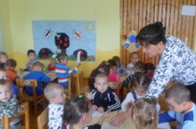 Кечкенәләр төркеме тырышып көзге яңгырны сурәтлиләр.Молодцы, балалар!