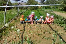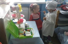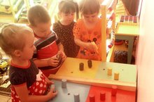 Иң кечкенәләрнең беренче төркеме рәхәтләнеп уйный-уйный төсләрне өйрәнәләр.