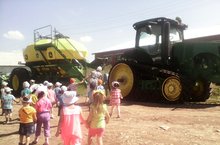 Үткән атнаны иң кечкенәләрнең икенче төркеме машина-трактор паркына экскурсия ясадылар. Алар анда төрле эшне берюлы башкара торган техника(трактор) белән таныштылар.Комбайннарның уракка әзерләнүен күзәттеләр.Механизатор абыйлары тиздән ипи җыярга китәбез диделәр. Ә балаларыбыз кечкенә булуларына карамастан сез ипи җыярга түгел, ә ашлык урырга китәсез. Ипи безнең өстәлгә күп юллар үтеп он булып пекарныйда пешкәннән соң килә дип механизатор абыйларын шаккаттырдылар һәм авыр эшләрендә ашлыкның бөртегендә чәчмичә урып алуларын, уңышлар теләделәр.