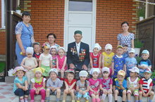 22 июнь – Хәтер көне. Шул уңайдан 2 нче кечкенәләр төркеме авылыбызда яшәүче сугыш ветераны Мөхлис абый Хәбибуллин белән очрашты. Мөхлис абый безгә сугышта күрсәткән батырлыклары, туган җиребезне саклап калуда күрсәткән тырышлыклары хакында сөйләде. Аның орден - медальләрен балалар зур кызыксыну белән карадылар. Без барыбыз да сугыш кырында ятып калган һәм туган җирләренә исән-сау әйләнеп кайткан абыйларыбыз алдында баш иябез.