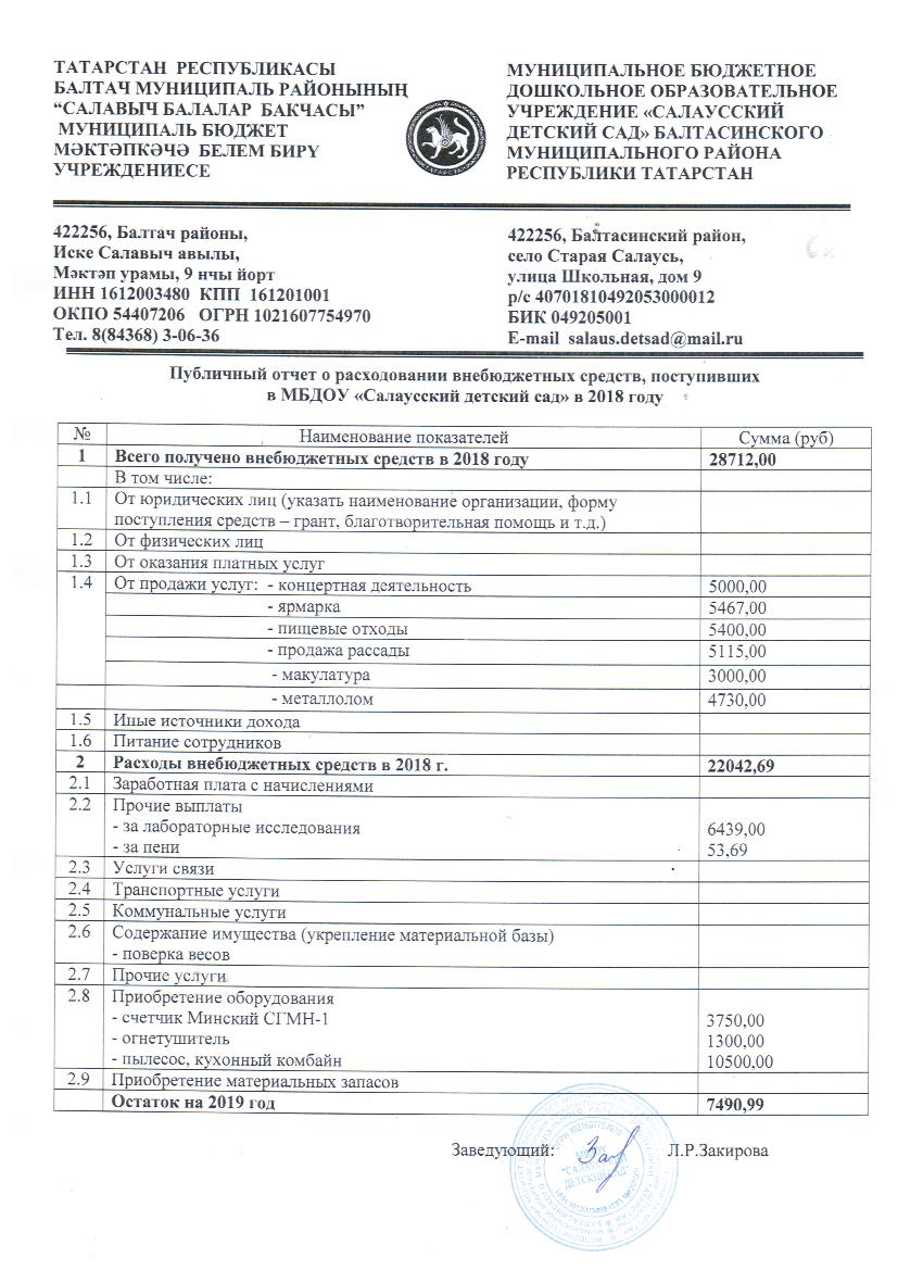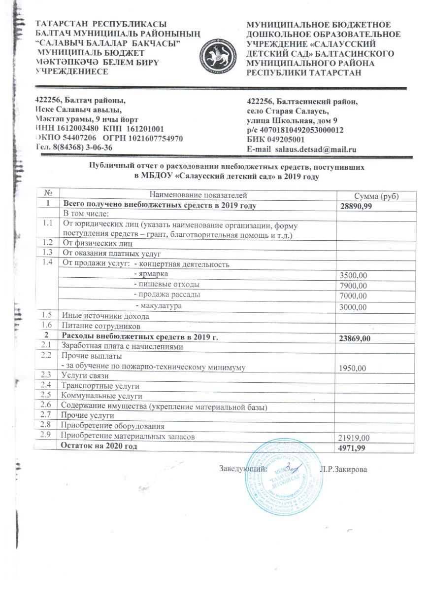 Публичный отчет о расходовании внебюджетных средств на 2019год