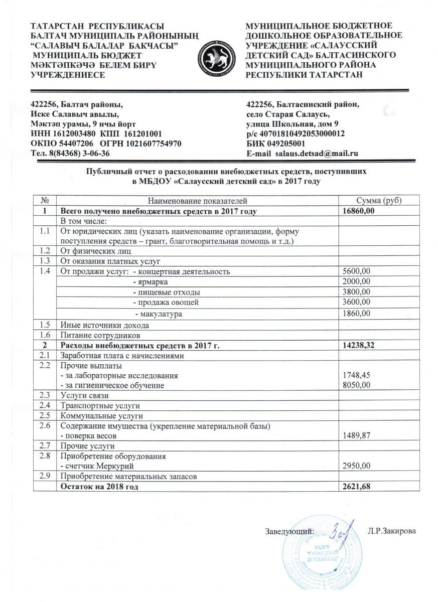Публичный отчет о расходовании внебюджетных средств в 2017году