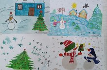 Рисунки обучающихся Биктяшской НОШ/ Биктәш башлангыч мәктәбе укучыларының Яңа ел күргәзмәсе