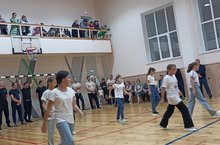 Обучающиеся присоединились к флешмобу «Движение первых»./Укучылар «Беренчеләр хәрәкәте» флешмобына кушылды.