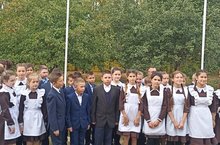 Утренняя линейка началась с поднятия Государственных флагов и исполнением гимна./Иртәнге линейка традицион рәвештә Дәуләт флагларын күтәрү һәм гимннарын җырлау белән башланып китте.