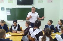 В рамках месячника безопасности сотрудники муниципальной полиции Накипова Р.Л. и Шайхутдинова З.Г. провели профилактическую беседу./Иминлек айлыгы кысаларында муниципаль полиция вәкилләре Накипова Р.Л. һәм Шәйхетдинова З.Г. укучылар белән профилактик әңгәмә уздырды.