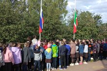 Новая учебная неделя началась с прослушивания гимнов Государства. /Яңа уку атнасы Дәүләт гимннарын тыңлау белән башланып китте.