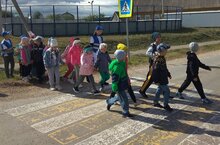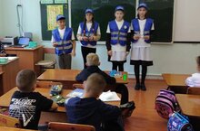 В рамках месячника «Внимание, дети!» члены отряда ЮИД провели работу в 1 классе/ «Сак булыгыз, балалар!» айлыгы кысаларында ЮИД членнары 1нче сыйныф укучыларына юл йөрү кагыйдәләрен аңлатты.