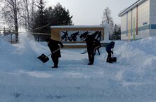 Обучающиеся 9 класса очистили от снега территорию памятника./9нчы сыйныф укучылары һәйкәл территориясен кардан чистартты.