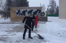 Обучающиеся 7 класса облагородили территорию памятника/7нче сыйныфукучылары һәйкәл территориясен кардан чистарттылар